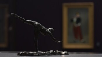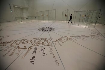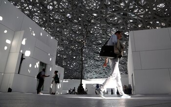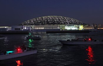 Bajo los claroscuros de su cúpula flotante, el presidente de la Autoridad de Turismo y Cultura de Abu Dhabi, Mohamed al Mubarak, develó ante cientos de periodistas las obras de arte que podrán contemplarse en el nuevo museo, de 6.400 metros cuadrados.