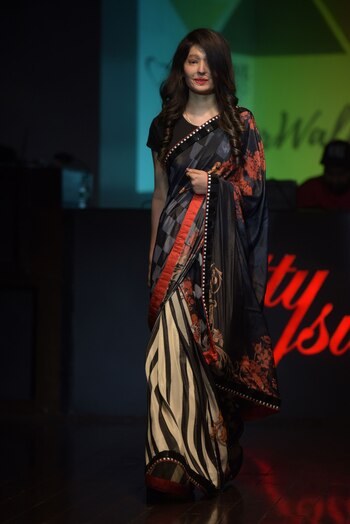 Las mujeres desfilaron con vestidos cedidos por grandes diseñadores indios, como Rohit Bal, Ranna Gill y Archana Kochhar. Desafiantes, ninguna de ellas se cubrió el rostro.