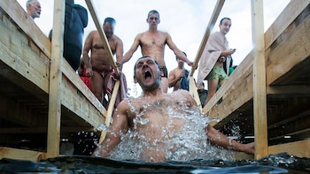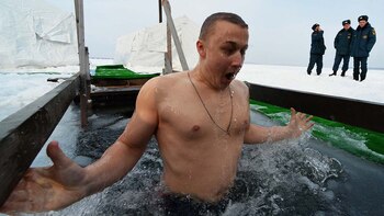 Centenares de miles de rusos de todas las edades desafían esta noche el frío para bañarse en las gélidas aguas de ríos y estanques con motivo de la celebración del Bautismo de Cristo, una de las festividades más importantes de la Iglesia ortodoxa.