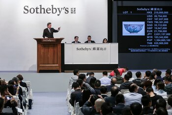 Un bol considerado extremadamente raro, perteneciente a la dinastía Qing, hecho para el emperador chino Kangxi, se vendió en 30,4 millones de dólares en una subasta este martes de la casa Sotheby's.