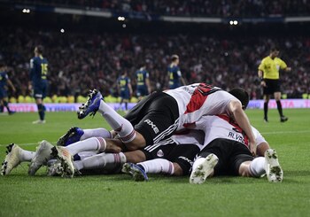 Gonzalo Martínez de River Plate marca el tercer gol.