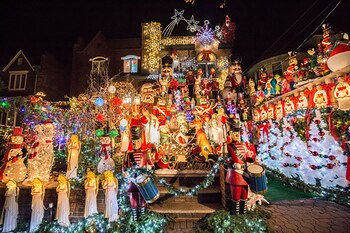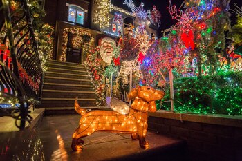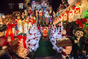 Así, comenzó a crecer una tradición que llevó a los vecinos de Dyker Heights a competir cada año por la decoraciones más desmesuradas y estrafalarias, en la que jardines y frentes de casas quedan absolutamente tapizados por luces, muñecos de Santa Claus, recreaciones de personajes infantiles y hasta juegos mecánicos.