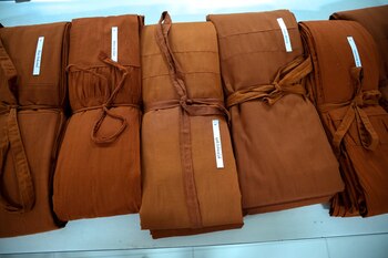 Las túnicas de azafrán se ven ante una ceremonia masiva de ordenación de monjes femeninas en el monasterio de Songdhammakalyani, provincia de Nakhon Pathom, Tailandia, el 5 de diciembre de 2018.