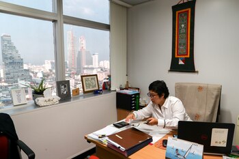 Boodsabann Chanthawong, de 49 años, empresaria, trabaja en su oficina, semanas antes de su ordenación para ser monje novicia en Bangkok, Tailandia, el 22 de noviembre de 2018.