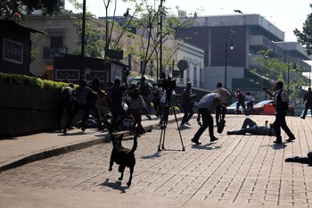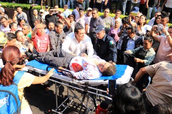 Era el mediodía en el Zócalo de Cuernavaca, "la ciudad de la eterna primavera", cuando los sonidos de las balas irrumpieron en una manifestación.