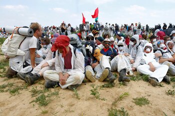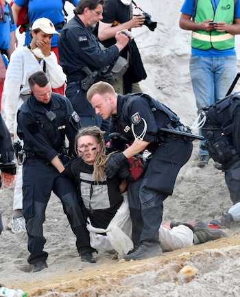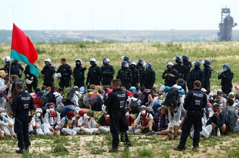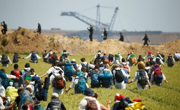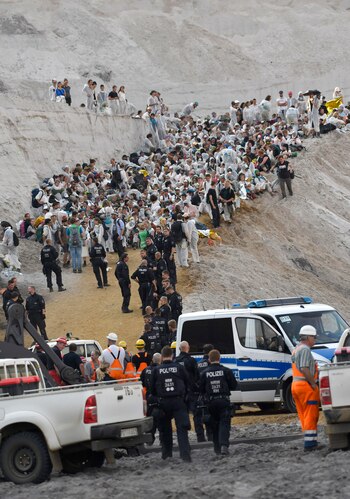 Cientos de manifestantes lograron bloquear por un tiempo las vías del tren de transporte de carbón y otro grupo atravesó una barrera policial para entrar a la mina, informó la agencia noticiosa dpa. Las diversas manifestaciones fueron, en general, pacíficas.