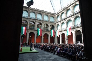 Fue en el Palacio Nacional, rodeado de sus majestuosos pilares, que el presidente envió su mensaje.
