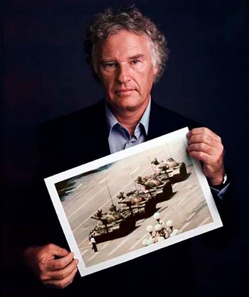 La instantánea por la que Cole es más conocido, que dio la vuelta al mundo y se convirtió en una de las fotos más icónicas del siglo pasado, muestra a un hombre plantado frente a una columna de blindados en la avenida pequinesa de Chang'An, como protesta individual, después de que cientos de jóvenes murieran en la plaza horas antes.