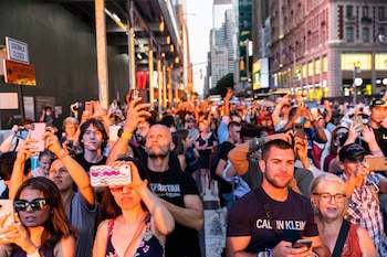 “Esto es una auténtica locura”, dijo mientras que tocaba el claxon un taxista que intentaba cruzar la calle 42 a la altura de la estación de Grand Central, uno de los puntos más populares para fotografiar este momento que se produce dos veces al año.
