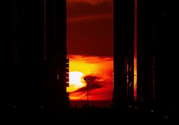 Si la cuadrícula estuviera perfectamente orientada al norte este fenómeno ocurriría en los solsticios -como pasa en Stonehenge-, pero al estar inclinada unos 30 grados al este las fechas varían, y este año se dio, además de hoy, también a final de mayo.