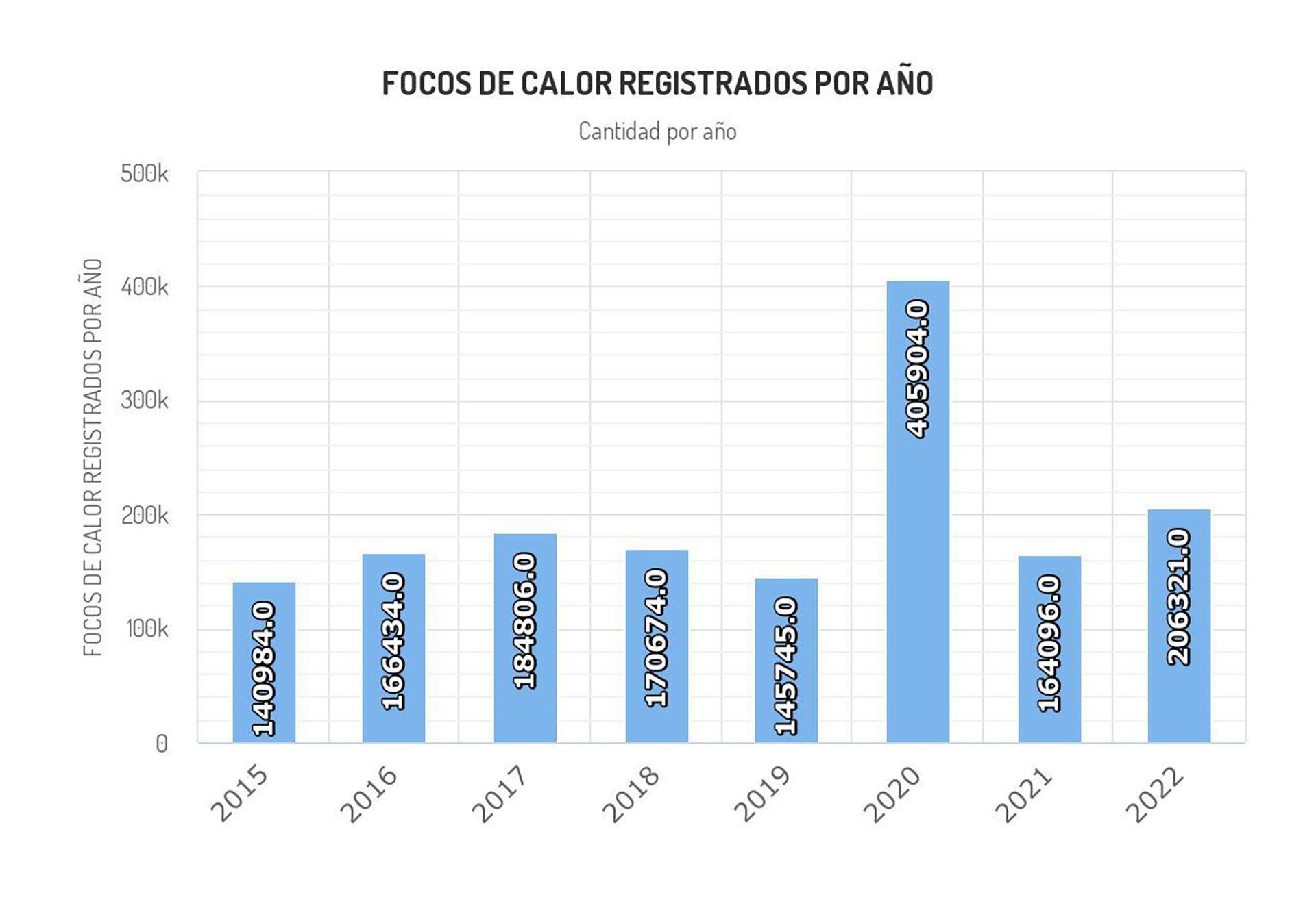 Desde 2019 hasta la actualidad se registraron más de 7.300 incendios que afectaron por lo menos 2.417.764 hectáreas en Argentina, de acuerdo a los números reportados por las provincias al Ministerio de Ambiente de la Nación. La superficie quemada continúa, de la mano del fenómeno climático de “La Niña”, en ascenso. Según esos registros oficiales, en estos meses de 2022 ya se superó lo acumulado en todo 2021, según pudo reconstruir Infobae en septiembre pasado.