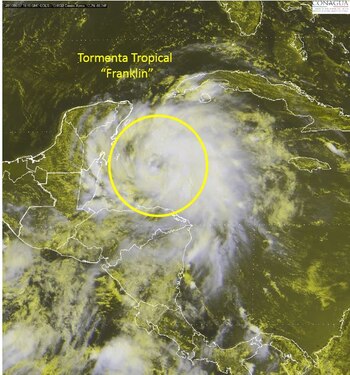 Los expertos del NHC prevén que Franklin continuará fortaleciéndose a su paso por aguas del Caribe, por lo que podría "estar cerca de alcanzar intensidad de huracán cuando toque tierra esta tarde o noche" en la península yucateca, para luego debilitarse.