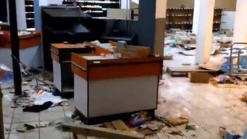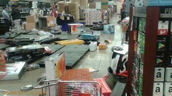 Durante los asaltos, los participantes forzaron las cortinas de las tiendas y rompieron los cristales para sacar pantallas, hornos de microondas, juguetes y alimentos.