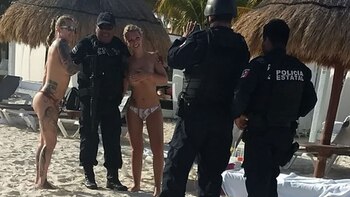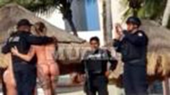 En el puerto turístico de Cancún, a donde las autoridades federales de México acaban de enviar refuerzos de seguridad ante las alertas de los gobiernos de Estados Unidos y Canadá, policías estatales asignados a la seguridad en playas cedieron a la tentación de tomarse unas fotos con turistas en topless.
