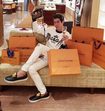 Sus compras las realiza en las costosas tiendas Louis Vuitton, Gucci, Christian Dior, Karl Lagerfeld, Yves Saint Laurent, Ferragamo, Versace, Prada, Fendi, Hermès, Chanel, Armani, Dolce & Gabbana, y no tiene reparo en exhibirse dentro de las tiendas o con las bolsas de compra.