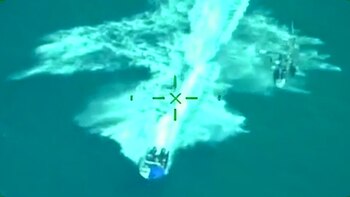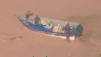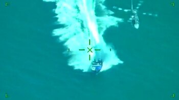 El video muestra a varios narcotraficantes manejando la lancha hacia la costa, mientras son perseguidos por un helicóptero de la Armada mexicana.