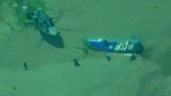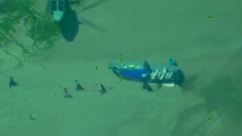 Al llegar a la costa, cerca de diez narcotraficantes saltaron de la lancha y huyeron ante el espectacular aterrizaje del helicóptero.