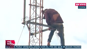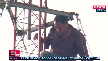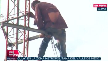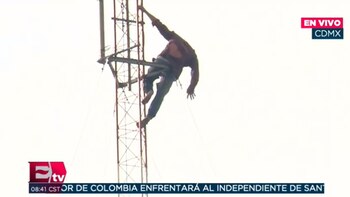 Durante dos horas, un hombre amenazó con arrojarse desde lo alto de una antena de una plaza comercial ubicada en pleno centro histórico de la Ciudad de México.