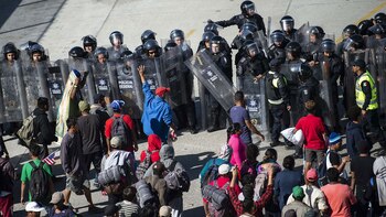 Cientos de migrantes centroamericanos intentaron este domingo ingresar por la fuerza a Estados Unidos desde el lado mexicano. En medio de empujones y con mujeres que llevaban incluso a sus niños en brazos, gran parte de la caravana trató de saltar la valla fronteriza en Tijuana. Otros, en tanto, rompieron el cerco policial en la garita de El Chaparral.