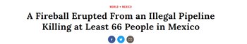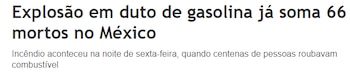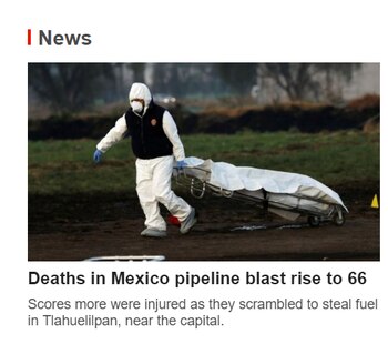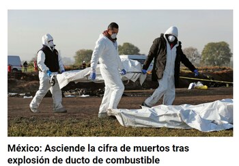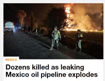 "Explosión de gasoducto en México mata a 66 y hiere a decenas más", señala el titular.