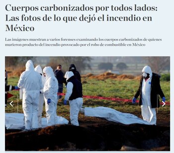 A través de epígrafes explica a sus lectores la cifra de fallecidos, el lugar exacto en el que ocurrieron los hechos y contextualiza el problema del robo de combustible.