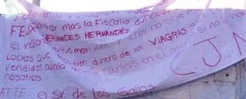 El CJNG advierte que Félix Hernández Hernández que trabaja en la fiscalía regional de Uruapan, junto con los comandantes Arturo Martínez Vargas y José Elías Moreno Oviedo, son acusados de presuntamente aceptar sobornos de "Los Viagras". Le piden al fiscal que "tome carta en el asunto", de lo contrario ellos lo harán.