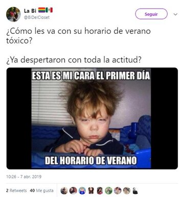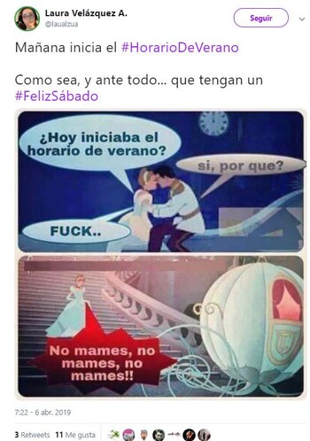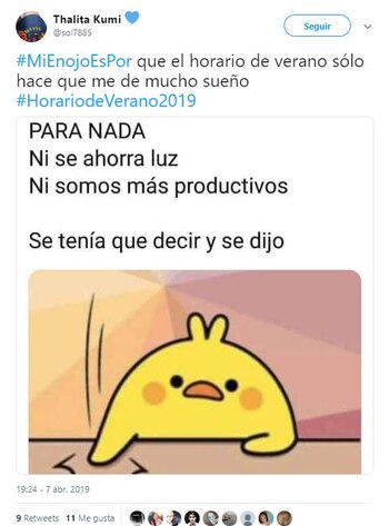 Estado: Horario de Verano— Gansito Marinela🐤 (@CsarMor0910) April 8, 2019