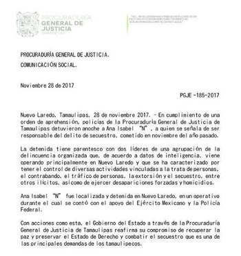 Ana Isabel "se ha caracterizado por tener el control de diversas actividades vinculadas a la trata de personas, el contrabando, el tráfico de personas, la extorsión y el secuestro, entre otros ilícitos, así como de ejercer desapariciones forzadas y homicidios", destacó la fiscalía.