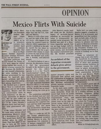 Según el diario estadounidense, no es ninguna buena señal que la gente de López Obrador haya recibido a Kicillof. Los mercados y los socios comerciales principales como son EEUU y Canadá, deben de preocuparse si el hombre responsable del incremento exponencial de la inflación en Argentina aconseja a los economistas mexicanos.
