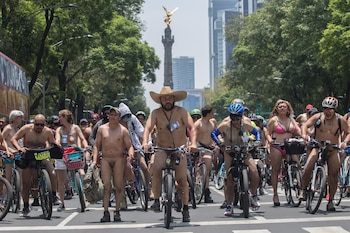 Centenares de ciclistas desnudos circularon este sábado a través del centro de Ciudad de México para escenificar su fragilidad ante los conductores de automóviles y reclamar más respeto y seguridad vial para las bicicletas y los peatones.