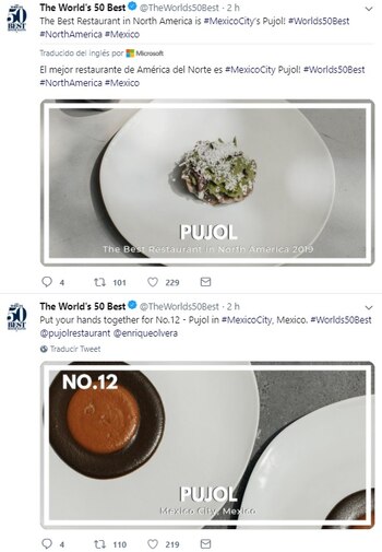Este martes Pujol fue reconocido como el mejor restaurante del país y el número 12 en el ranking general durante la ceremonia "Los 50 mejores restaurantes del mundo" de 2019 en Singapur.