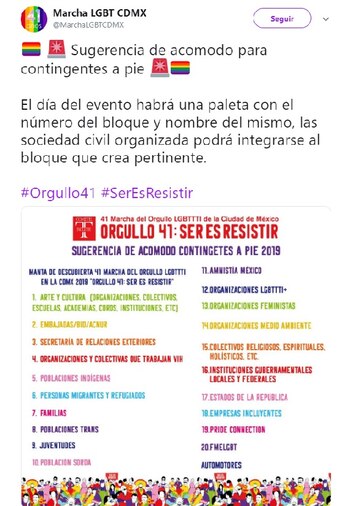 Todo está listo en Ciudad de México para el inicio de los festejos de la comunidad LGBTTTI que culminarán el sábado con la tradicional marcha en las principales calles de la capital, que este año tiene como lema "Ser es resistir".