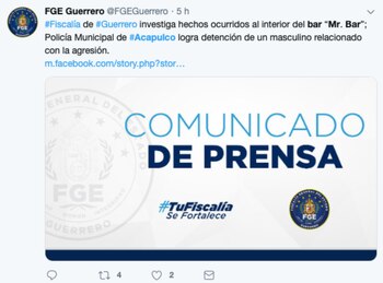La Fiscalía General del Estado informó que el ataque ocurrió en el local "Mr. Bar", donde fueron privados de la vida cuatro hombres y otras siete personas fueron lesionadas con armas de fuego. Aunque estos son los datos oficiales, reportes de medios locales aseguran que un quinto herido murió de camino al hospital.