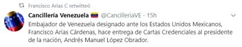 Sin embargo este lunes el Gobierno de México aprobó a Francisco Arias y aceptó sus cartas credenciales.