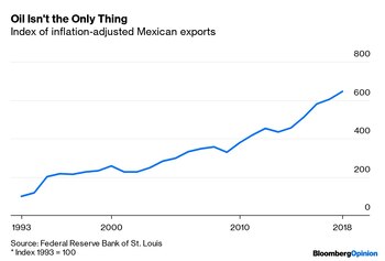 Como resultado, pese al declive del petróleo, las exportaciones mexicanas han aumentado de forma sostenida: