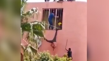 Graciela, de 28 años, quedó atrapada en la protección de una casa al intentar ingresar (Video: Facebook)