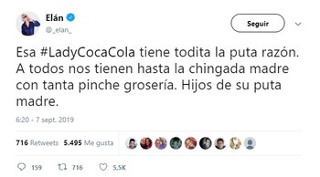 "No va con Coca Cola. De verdad a los directivos les quiero decir que qué humillación que su marca se transgreda a algo tan corriente y tan bajo como lo que estamos viendo ahora", condenó.