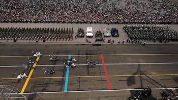 11:30 horas: Miles de elementos pasan frente al palco presidencial y saludan al mandatario.