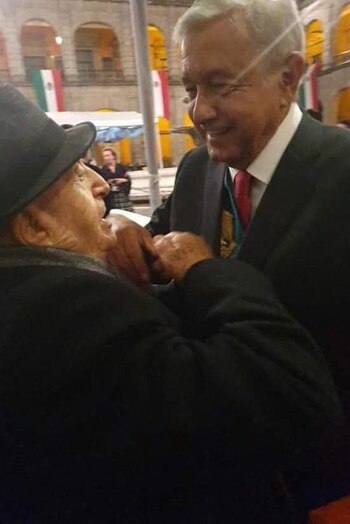 Corin Robertson, embajadora del Reino Unido en México también subió en sus redes sociales la foto que se tomó con López Obrador y escribio: "Qué emocionante celebrar el Grito en el Palacio Nacional con el Presidente