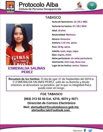 El caso se remonta al 28 de septiembre, cuando su cuerpo fue encontrado flotando en la laguna de Las Ilusiones, localizada en la ciudad de Villahermosa, capital de Tabasco. La joven, identificada por periódicos estatales como Esmeralda Salinas Pérez, fue hallada a la altura de la colonia José María Pino Suárez por pobladores de la zona.