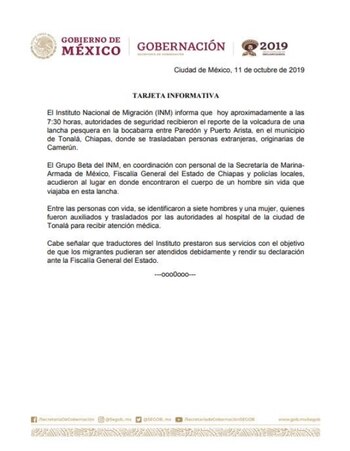 "Las personas rescatadas con vida fueron trasladadas de manera inmediata al Hospital General de Tonalá, donde reciben asistencia médica, jurídica, psicológica y social", concluyó el boletín.