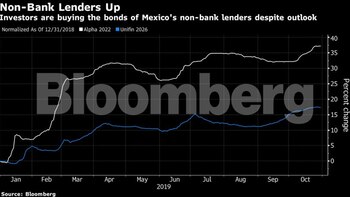 Los prestamistas no bancarios de México están excepcionalmente expuestos al estancamiento del crecimiento y a la inversión empresarial causados por la incertidumbre en torno a las políticas del presidente Andrés Manuel López Obrador. Aun así, los inversionistas están ganando con los bonos.