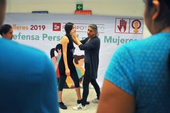 "Este taller tiene una filosofía feminista, enfocado en los derechos de las mujeres y en la sororidad. Aquí nos enseñan a decir 'no' con credibilidad, no con esa voz estereotipada y actitud sumisa que nos han inculcado, con una mirada firme donde también estás diciendo '¡hasta aquí!'", explica Ana Viveros, directora del programa de igualdad de género de la alcaldía Azcapotzalco, que patrocina los cursos.