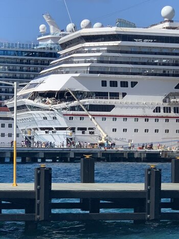 El inusual choque entre los cruceros Carnival Legend y el Carnival Glory dejó un lesionado. El Oasis Royal Caribbean también estuvo involucrado, aunque no recibió daños de consideración.