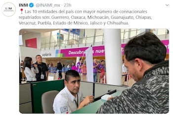 De las 32 entidades del país, los 10 estados con mayor número de personas repatriadas son: Guerrero con 22,176; Oaxaca con 19,340; Michoacán, 17,848; Guanajuato, 14,221; Chiapas, 12,652; Veracruz, 12,243; Puebla, 12,175; Estado de México, 11,46; Jalisco, 8,930, y Chihuahua, 7,199.