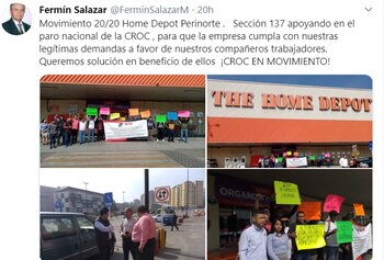 La CROC señaló que The Home Depot amenaza a los trabajadores con despedirlos y boletinarlos en la zona si se afilian a algún sindicato.