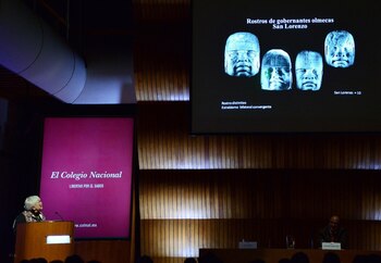 Descubridora de la última cabeza colosal olmeca, a la que decidieron nombrar “Tiburcio”, la doctora Anne Cyphers, máxima autoridad en el tema, reveló varios de los misterios que rodean estos impresionantes monumentos de la “cultura madre” de Mesoamérica, entre ellos, su función como retratos de gobernantes ancestrales, al abrir el ciclo de conferencias “La arqueología hoy”, en El Colegio Nacional.