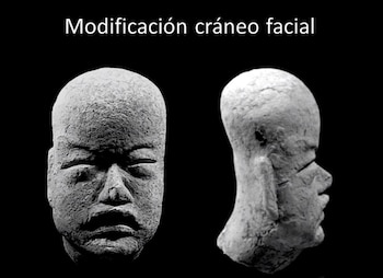 Cyphers hizo hincapié en que las cabezas colosales, pero en general las figurillas antropomorfas halladas en contextos arqueológicas, reflejan la modificación craneofacial a la que eran sometidos los individuos de esta civilización, antes del año y medio de edad, cuando las suturas de la cabeza aún se encuentran abiertas.
