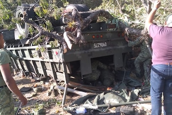 El transporte militar se accidentó la tarde del lunes en un punto de la carretera federal 175 en las inmediaciones del municipio de Guelatao de Juárez, en la llamada Sierra Norte de Oaxaca, señalaron los medios.