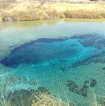 Uno de los mayores atractivos de este particular edén es la Poza Azul. Sus aguas son ricas en un mineral color celeste que dota al manantial de una gama de tonos caribeños, y confiere al lugar un aire mágico.
